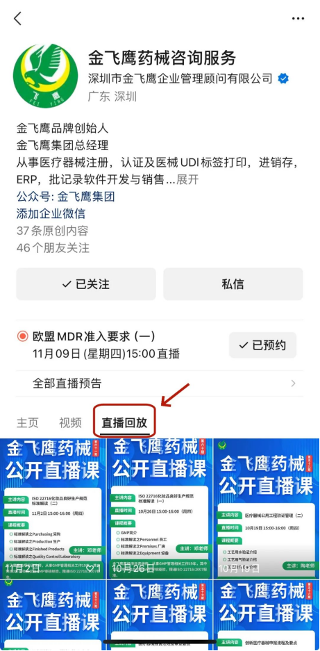 金飞鹰直播培训简介 金飞鹰直播培训,是每周一次的固定培训栏目,优选金飞鹰国内外资深注册/项目老师定期为大家讲解医疗器械注册相关知识,解答大家在医疗器械注册过程中的诸多疑问。 此前我们已为大家带来新版医疗器械生物学评价标准、新版医疗器械风险管理标准、医疗器软件注册、医疗器械临床评价等共计61次培训课程,有兴趣的可点击视频号直播回放进行查看~