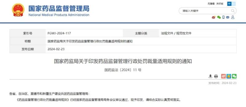 近日,国家药监局发布《药品监督管理行政处罚裁量适用规则》(以下简称《规则》),并宣布自2024年8月1日起施行。