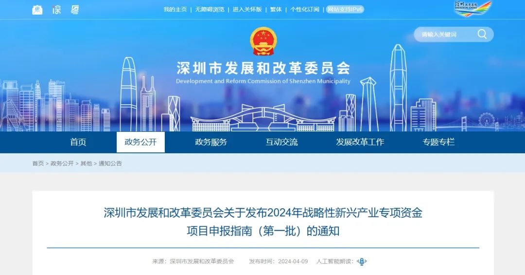4月9日,深圳市发改委发布《2024年战略性新兴产业专项资金项目申报指南(第一批)》,共包含产业化事后补助、新技术新产品应用示范推广、注册许可认证等10个项目扶持计划申报指南。其中产业化事后补助扶持计划的扶持方向包括: